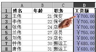 上述操作选择的是一个人民币符号,此后工作表中的“工资额”数据前就会加上这个符号,如图 21所示。