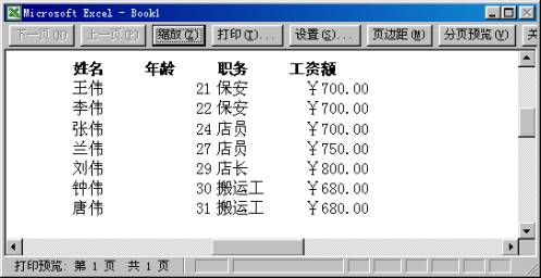 中文Excel 2000速成教程 1.5 预览和调整报表外观