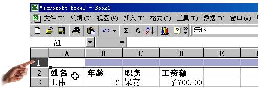 完成这一步操作后,“行1”中就只有一个单元格了,这是中文Excel 2000中的常用操作,初学者应当注意了。