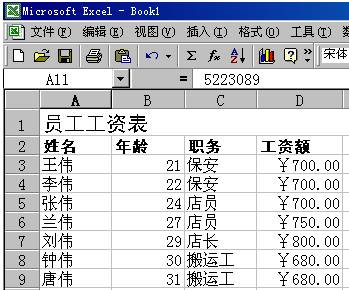 此后,在原“行1”前将插入新的行,而原来的“行1”将变成“行2”,如图 27所示。新行将使用已经存在列定义,您可以为每一个单元格填入内容,但由于它将用于书写工资表的标题,所以应当合并各列,使它们不在存在,而由一个单列取而代之,从而让标题可以正常出现在电子报表的开头处。