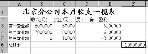 上述操作完成后,一张电子报表就制作好了。此表的最大特点是可以在变更收入/支出数据后,自动更新“盈利”与“总结余”单元格中的值。